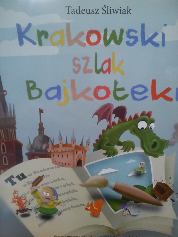 Projekt "Krakowski szlak Bajkoteki" stanowi realizację zadania publicznego Gminy Mejskiej Kraków na rok 2016 w obszarze kultury, sztuki, ochrony dóbr kultury i dziedzictwa narodowego pt."Upowszechnianie literatury i działalności wydawnictwa". Jego organizatorem jest Stowarzyszenie Przyjaciół Nowej Huty, a działania objęte są patronatem Wojewódzkiej Biblioteki Publicznej w Krakowie i Ośrodka Kultury Kraków - Nowa Huta. W ramach projektu zorganizowano konkurs plastyczny, w trakcie którego uczniowie krakowskich szkół podstawowych wykonywali prace do wybranych wierszy Poety. I to właśnie prace laureatów konkursu zostały zamieszczone w trzymanej przez Was w ręku książce. Następnie na podstawie wierszy Poety powstała niniejsza publikacja, będąca literackim przedownikiem po Krakowie. [okładka]