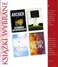 Robert Harris: "Pompeje" W 79 r. n.e. następuje nagła awaria potężnego rzymskiego akweduktu Aqua Augusta. Inżynier Marcus Atiliusz musi za wszelką cenę zapewnić dostawy wody do Pompejów i innych miast Zatoki Neapolitańskiej. Wszystko wskazuje na to, że do awarii doszło na zboczach Wezuwiusza. Zmierzając w stronę wulkanu, Atiliusz uświadamia sobie, że ma do czynienia z siłami, wobec których blednie cała potęga Imperium Rzymskiego. Kristin Hannah: "Między siostrami" Meghann Dontess, świetny adwokat, specjalista od spraw rozwodowych, nie wierzy w szczęśliwe małżeństwa. Na wiadomość o tym, że jej młodsza siostra, Claire, chce poślubić ubogiego wykonawcę muzyki country, Meghann przysięga sobie, że nie dopuści do tego związku. Kiedy jednak dochodzi do spotkania obu sióstr, każda z nich odkrywa, że może drugiej wiele ofiarować i wiele wybaczyć. Joseph Finder: "Paranoja" Młody pracownik wielkiego amerykańskiego koncernu elektronicznego, Adam Cassidy, ulega szantażowi ze strony kierownictwa. Staje się szpiegiem przemysłowym, pogrążając się coraz głębiej w otchłani zbrodniczych intryg. Stawką w tej grze są nie tylko wielkie pieniądze. Jest nią życie. Czy Adam zdoła się wyzwolić z dławiącej go pętli? Nicholas Sparks: "Ślub" Po prawie trzydziestu latach od chwii ślubu Wilson Lewis, wzięty prawnik, stwierdza, że jego małżeństwo stoi nad przepaścią. Brak w nim dawnego romantyzmu - i to wyłącznie z jego winy. W obawie, że żona może go opuścić, Wilson czyni sobie wyrzuty, iż zanadto poświęcał się pracy, zaniedbując rodzinę. Czy teraz, gdy zbliża się ślub jego córki, potrafi na nowo rozbudzić namiętność, która połączyła go kiedyś z Jane? [okładka]